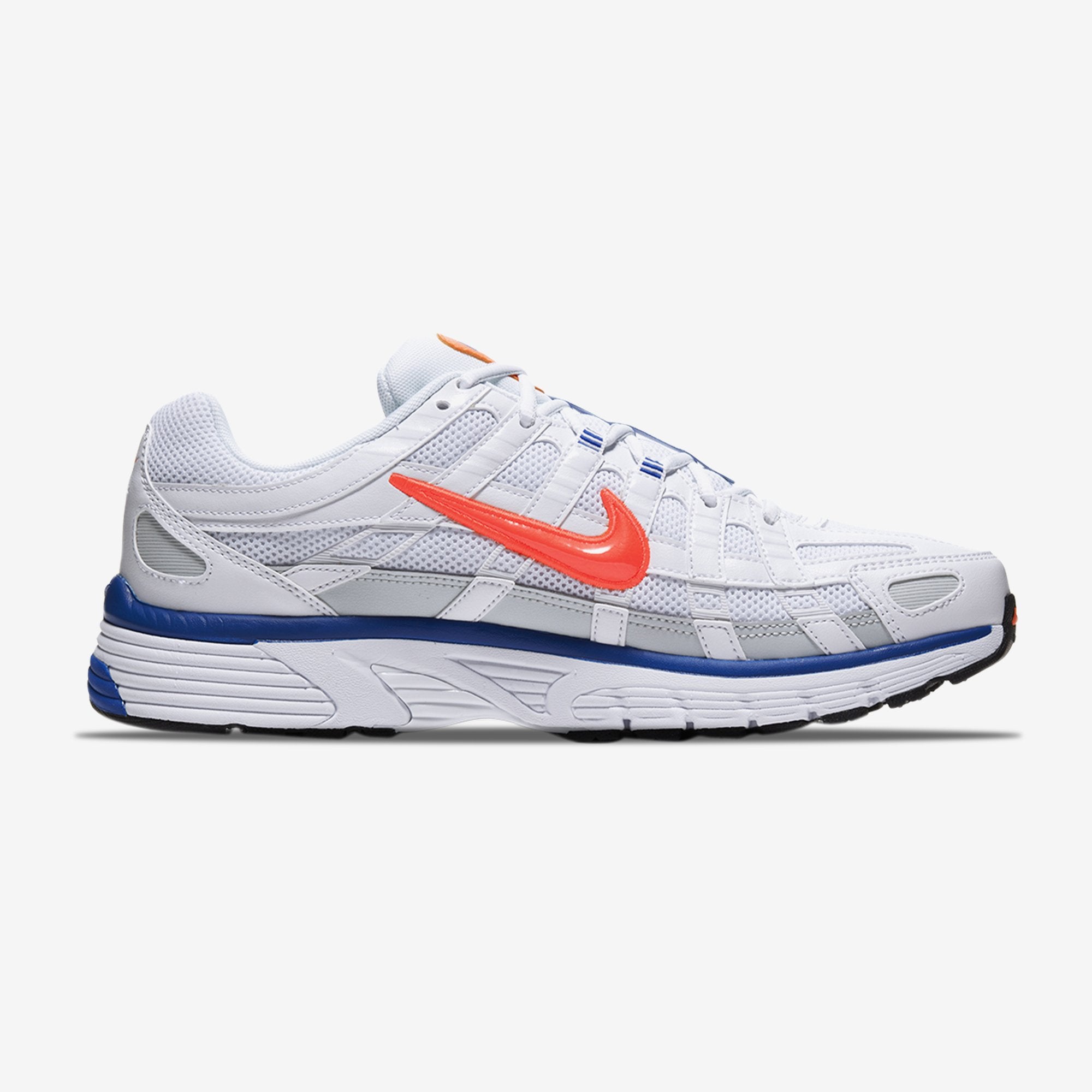 Kijk in de toekomst met de Nike P-6000. De Air Pegasus 2006 is vernieuwd met details uit het ruimtetijdperk, zoals synthetisch leer en mesh panelen, is deze sneaker klaar voor de volgende stap. Deze sneaker heeft naast een witte basis grijze en oranje panelen op de swoosh, de hak en op de outsole.